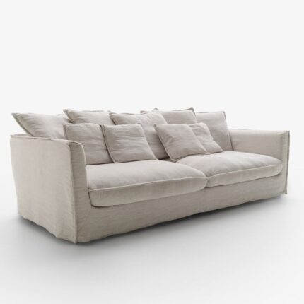Canapeaua Egos este concepută pentru a decora spații moderne și armonioase, în care detaliile au un rol esențial în definirea designului interior. Liniile sale elegante și proporțiile echilibrate creează un aspect rafinat, potrivit pentru livinguri contemporane sau zone de relaxare. Pernele sale spațioase și confortabile se adaptează poziției naturale a corpului, oferind o experiență de ședere relaxantă și plăcută.