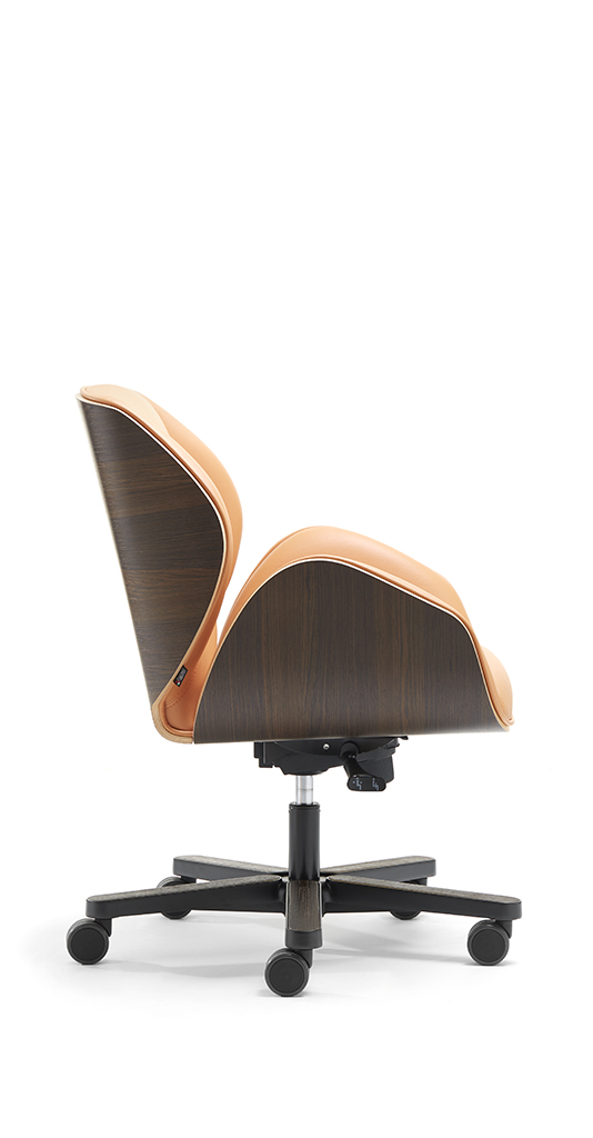 Designul se îmbină cu cea mai fină măiestrie: spătarul înalt și sculptat și contururile ușor curbate sporesc confortul șederii. Disponibil complet tapițat sau cu spate exterior furniruit cu lemn de trandafir.