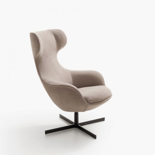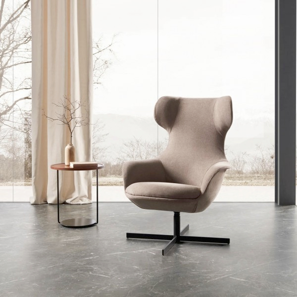 Fotoliul pivotant Yuro creează un spațiu personal de relaxare, asemenea unei mici arhitecturi dedicate confortului. Designul său învăluitor oferă un loc intim pentru odihnă, pentru a asculta muzică sau citi, transformând orice colț într-un refugiu confortabil.