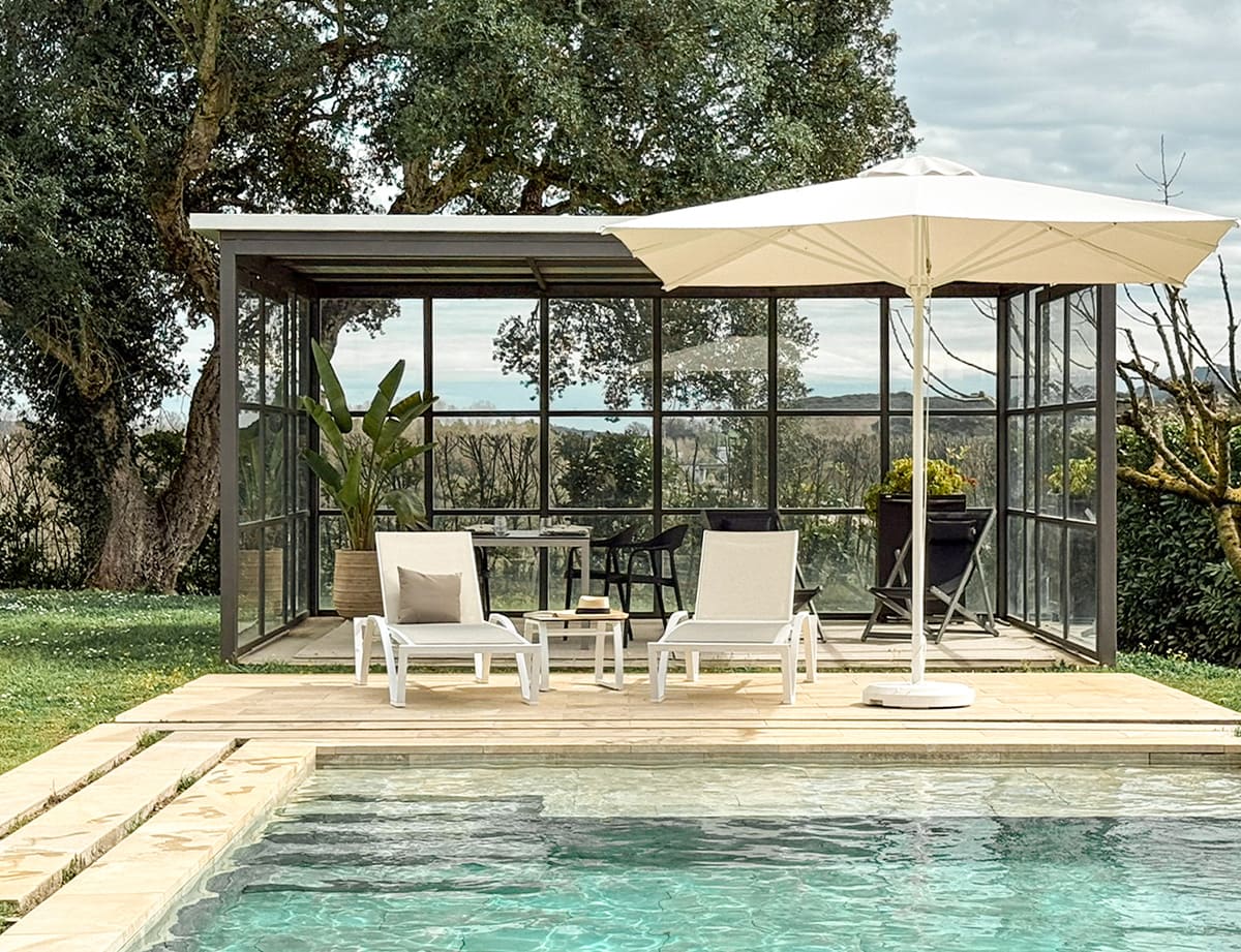 Este ideală pentru terase, grădini, zone de piscină și spații HoReCa, fiind concepută pentru utilizare în exterior.