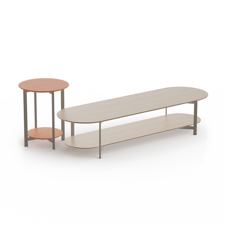 În ambele forme, cu două suprafețe care prezintă o expresie la același nivel, mesele de cafea Theo oferă utilizatorilor spațiu funcțional suplimentar. În timp ce suprafața superioară poate fi folosită pentru a servi gustări sau a expune obiecte decorative, suprafața inferioară servește ca spațiu de depozitare pentru cărți și reviste. Toate dimensiunile și modelele pot fi aranjate ca mese laterale și mese de cafea în machete.