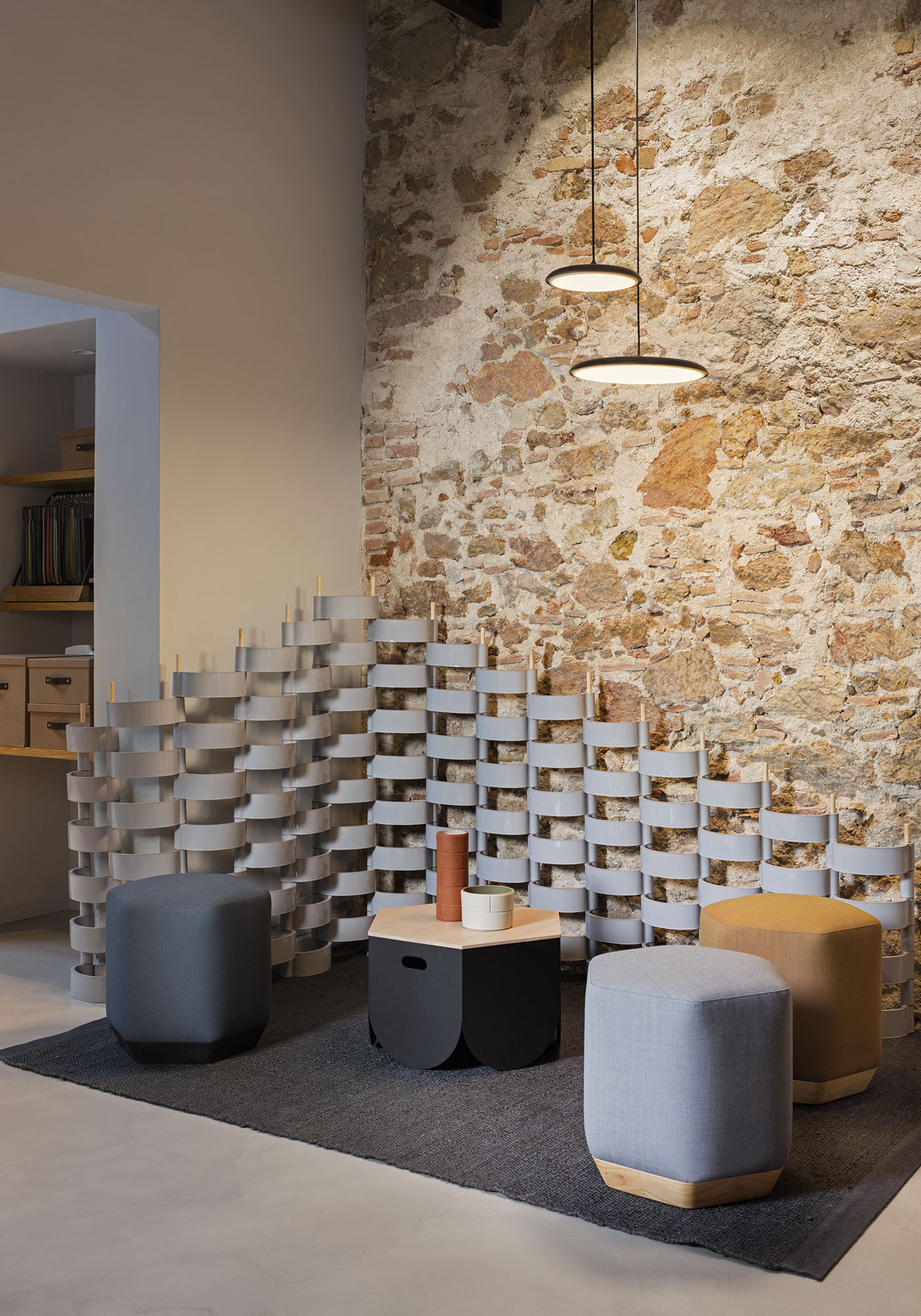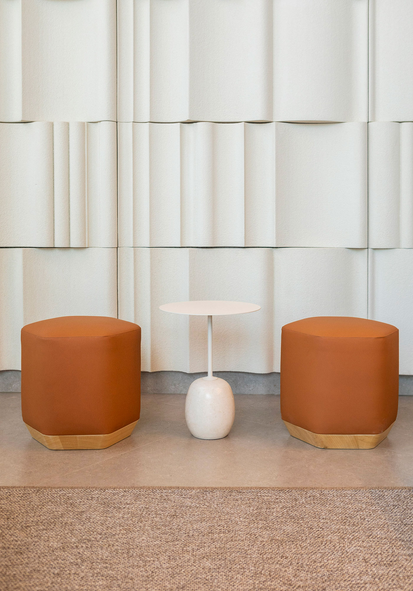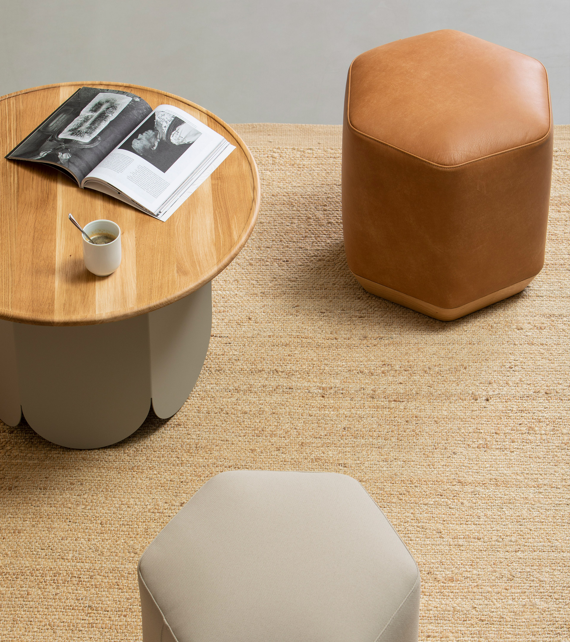 Proiectată de Emiliana Design Studio, familia Atay este un set de măsuțe laterale și taburete care se completează reciproc în combinații infinit armonioase, aducând rafinament, confort și culoare în zonele de așteptare și spațiile de întâlnire. Forma hexagonală caracteristică acestei colecții oferă un aspect unic, evidențiind jocul sugestiv de lumină și umbră pe fiecare dintre cele șase fațete.