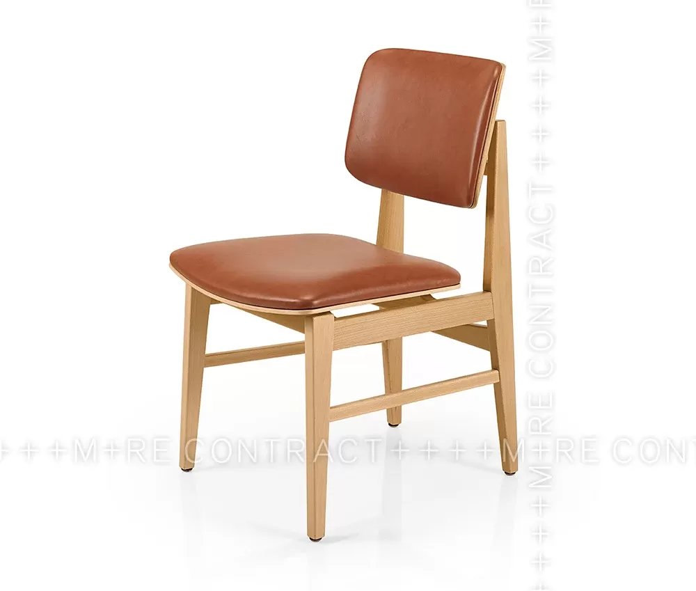 Scaun Shanna M1054WUUST design Francisco Cardoso, cu structură din lemn masiv și tapițerie confortabilă, ideal pentru dining modern și spații horeca elegante.
