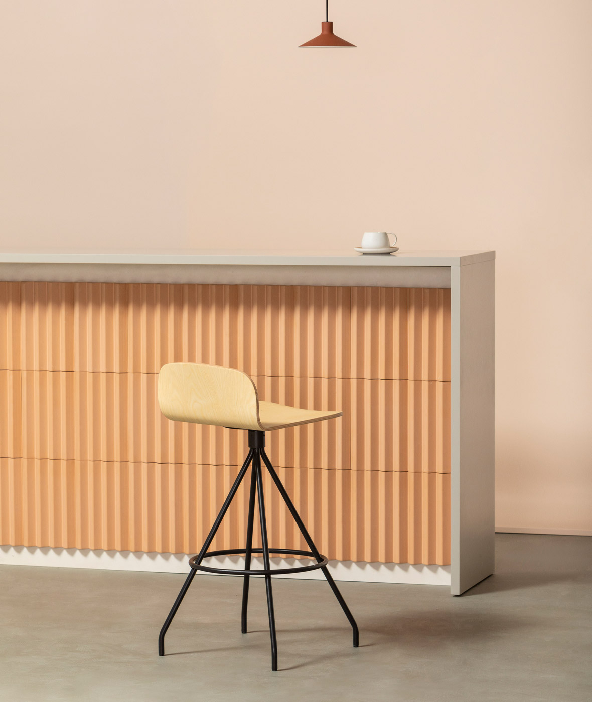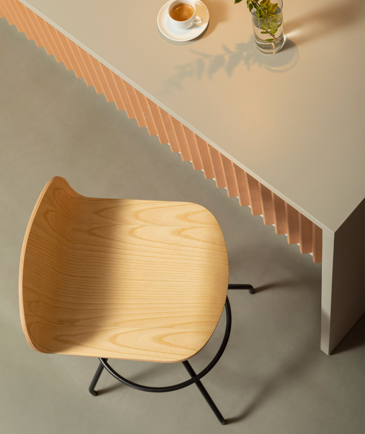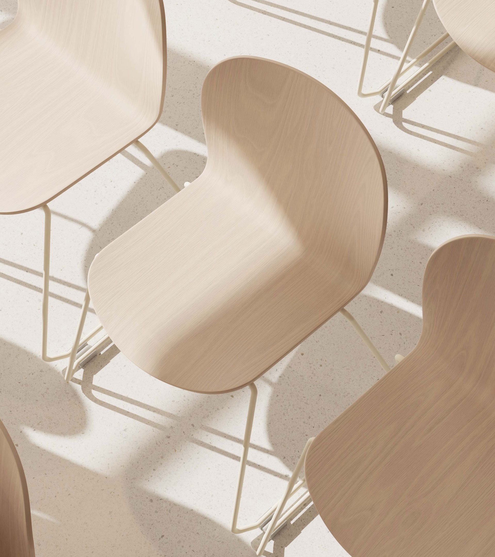 Scaunul Ona este realizat dintr-o singură placă de lemn stratificat, care își exprimă formele rotunjite și subtile prin simplitate și eleganță.